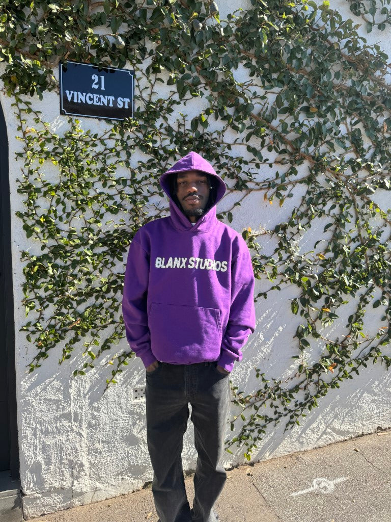 The Distressed Patch Logo Hoodie in the popular Purple colourway. The hoodie is made of 460gsm 100% cotton material and features custom distressed patches on the front, embroidery on the back and custom tags.